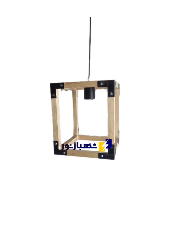 لوستر تک شعله چوب و فلز مکعب کد 35